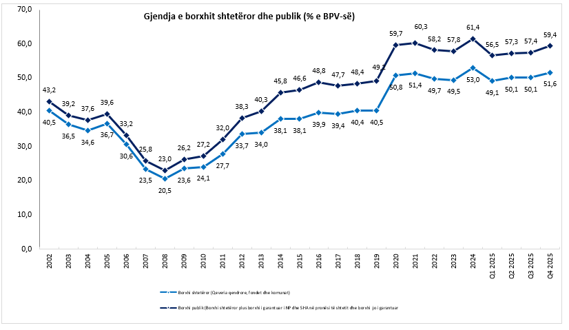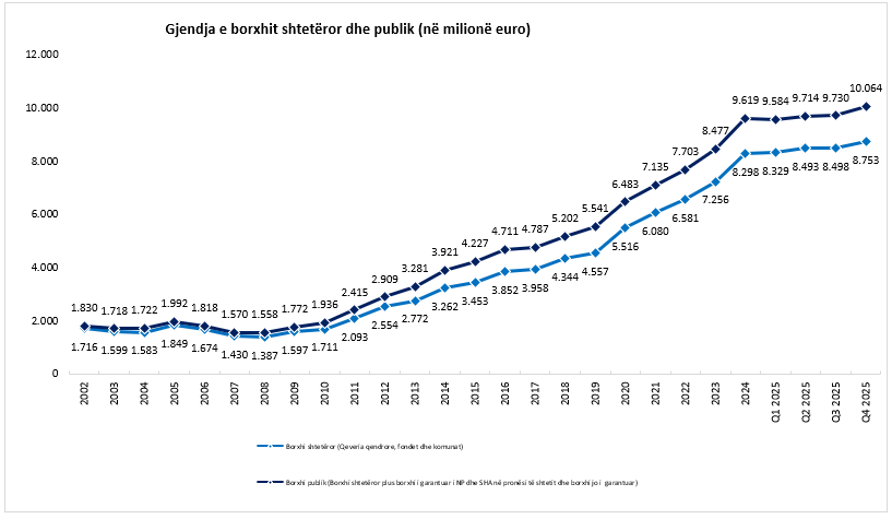 Gjendja e borxhit shtetëror dhe publik duke përfshirë datën 31.12.2025
